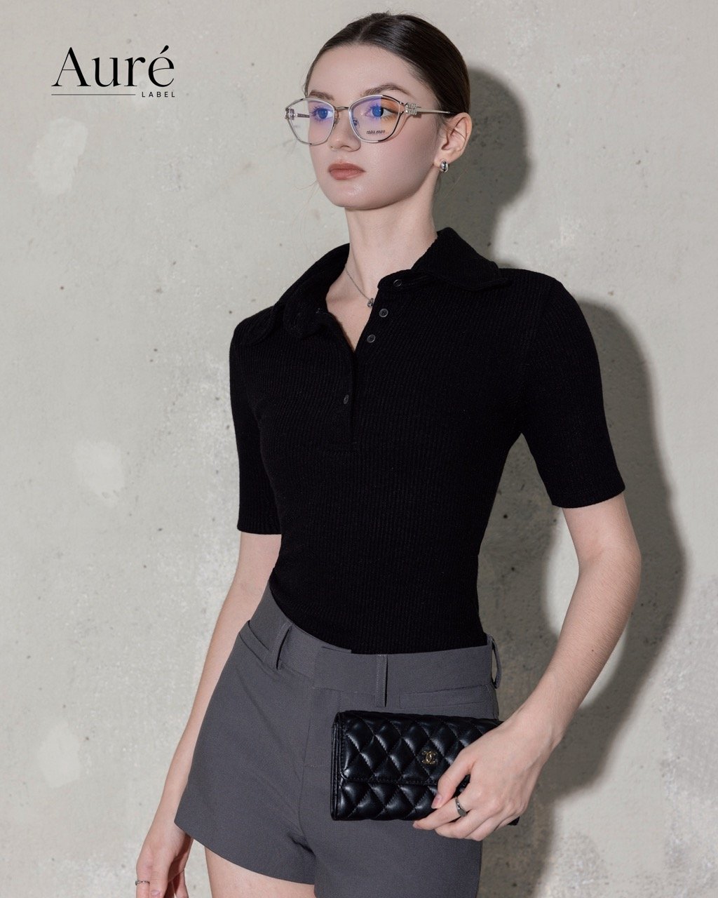 🖤 Cổ polo kinh điển, chất thun len gân cao cấp ôm gọn đường nét, đi cùng chiếc short xám basic nhưng sắc sảo – tất cả tạo nên khí chất “chic without trying”.